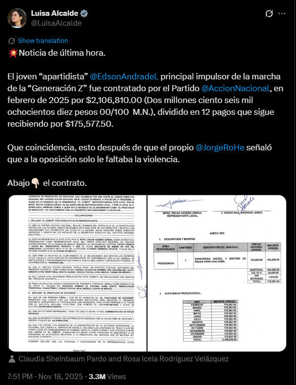 Edson Andrade, conocido por su papel en la organización de la Marcha de la Generación Z, anunció que dejará su hogar y abandonará el país tras denunciar que, según él, el gobierno federal divulgó información que pone en riesgo su seguridad. En un video publicado en sus redes sociales, aseguró que desde el partido oficial se difundió la versión de que recibió grandes sumas de dinero para promover la movilización juvenil y que además se hicieron públicos datos personales como su domicilio y CURP.